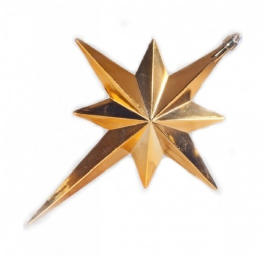 Золотая звезда PENERI  — прекрасный вариант эффектного и недорогого новогоднего украшения. Новогодняя звезда диаметром 40 см отлично подойдет для украшения уличных елок и просторных помещений. Такая звездочка смотрится очень нарядно, особенно при искусственном свете. А кроме того, она прочная и хорошо хранится, и поэтому будет радовать вас еще много лет.