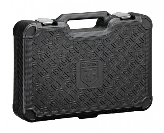Весь набор инструментов BERGER BG100-1438 находится в оригинальном и стильном кейсе. Чемодан изготовлен из высокотехнологичного пластика с добавлением резины. Такая конструкция делает его очень ударопрочным и стойким к низким температурам.