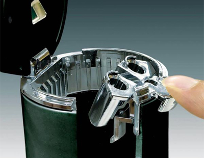 Внутри пепельницы имеется нож для обрубания сигареты и держатель для сигареты.