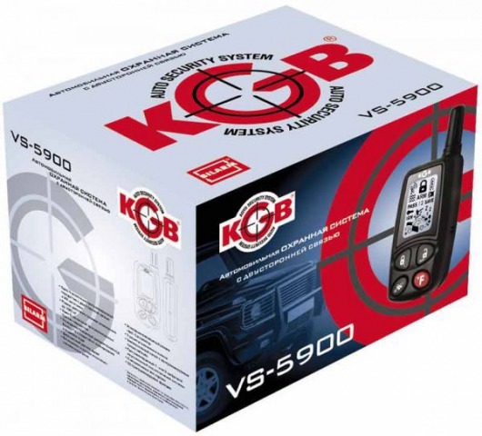 Сигнализация KGB VS-5900 комплектуется программируемым передатчиком с четырьмя кнопками, который имеет двухстороннюю связь и информативный ЖКИ-дисплей. Радиус действия в режиме оповещения составляет около 1000 метров, при условии минимального уровня застройки и относительно ровного рельефа местности. Связь брелока-передатчика с системой осуществляется при помощи динамического кода Keelog, который защищен от подмены и сканирования.