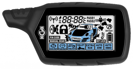 Основной брелок этой сигнализации оснащен ручной и автоматической проверкой нахождения в зоне связи, возможностью измерения температуры в салоне автомобиля, а так же встроенными часами, будильником и таймеров обратного отсчета. Кроме основного брелока с жидкокристаллическим дисплеем, система комплектуется дополнительным односторонним брелоком, который имеет возможность подавать весь список основных команд управления.