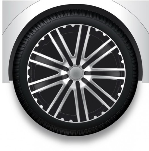 Диаметр автомобильных колпаков на колеса — 14 дюймов. Цвет: серебристо-черный.