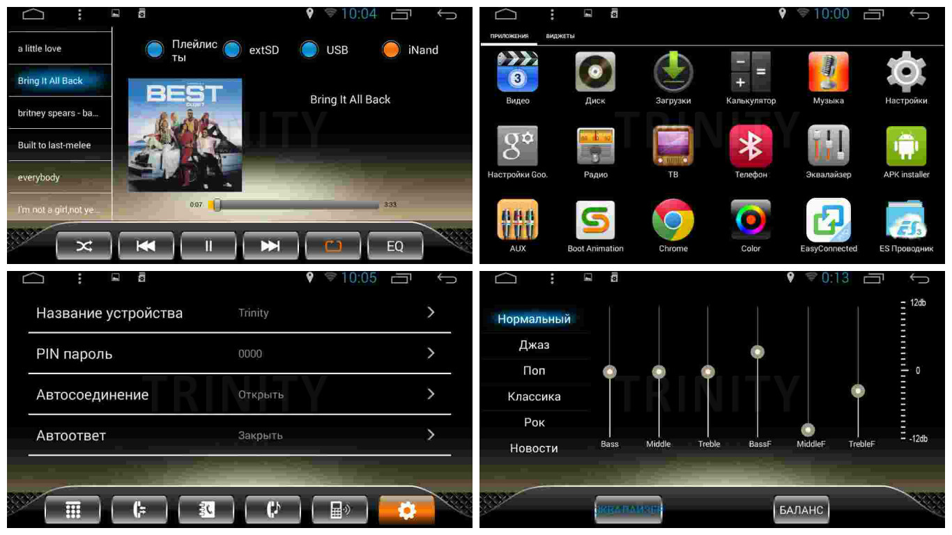 Мультимедийный плеер штатного головного устройства с навигацией Trinity поддерживает большинство форматов файлов. Поэтому выбранный вами диск обязательно будет читаться. Кроме того, штатная голова Trinity оснащена USB и SD-входом. Так что вы легко можете подключить к штатной магнитоле любую флэш-карту и смотреть/слушать любые файлы.