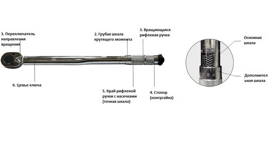 А далее, вращая рукоятку (№3), сопоставьте деление точной шкалы (№5) с делением на грубой шкале (№2). Деление нанесено на корпусе самого динамометрического гаечного ключа.