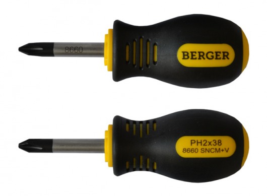 BERGER BG-08SS — это универсальный набор из 8-ти отверток с крестовыми наконечниками РН (Phillips) и прямыми наконечниками SLOT (шлиц). Отвертки изготовлены их прочной никель-хром-молибденовой стали марки AISI 8660, благодаря чему инструменты выдерживают продолжительные интенсивные нагрузки. А удобные резиновые рукоятки не скользят и абсолютно не деформируются при использовании.