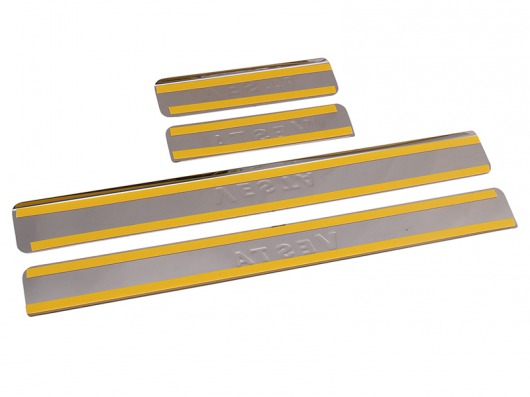 Внутренняя накладка на порог Лада Веста — это аксессуар автомобильного тюнинга, который защищает внутренний порог от механических повреждений при посадке и высадке из машины. Декоративные накладки с логотипом на внутренние пороги предназначены для автомобилей Лада Веста.