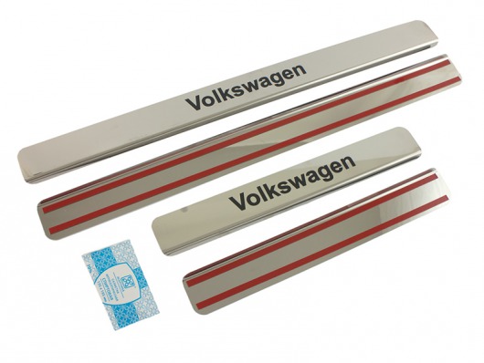 Внутренняя накладка на порог Volkswagen Passat B8 — это аксессуар автомобильного тюнинга, который защищает внутренний порог от механических повреждений при посадке и высадке из машины. Декоративные накладки с логотипом на внутренние пороги предназначены для автомобилей Фольксваген Пассат Б8.