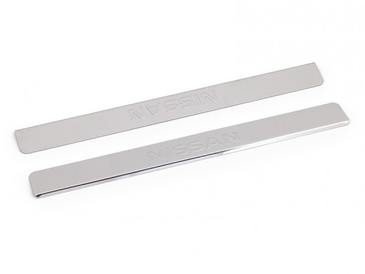 Накладки на металлические пороги дверей Nissan Juke с логотипом авто не только обеспечивают защиту верхней и боковой поверхности внутреннего порога, но и отлично вписываются в интерьер автомобиля, подчеркивая его стиль и индивидуальность. C монтажом проблем не возникнет: установка накладок на внутренний порог для Ниссан Жук производится на штатные места с помощью скотча 3M.