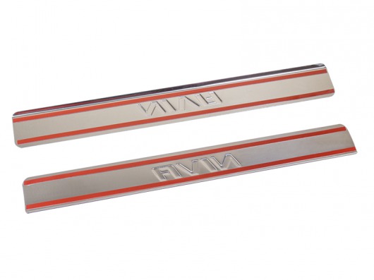 Накладки на металлические пороги дверей ВАЗ Нива с логотипом авто не только обеспечивают защиту верхней и боковой поверхности внутреннего порога, но и отлично вписываются в интерьер автомобиля, подчеркивая его стиль и индивидуальность. C монтажом проблем не возникнет: установка накладок на внутренний порог для ВАЗ 2121 производится на штатные места с помощью скотча 3M.