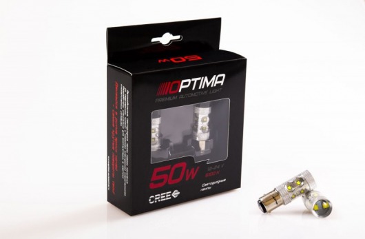 Светодиодная лампа Optima Premium P21W Cree 50W 12-24V 5100К – это габаритная лампа с увеличенной светоотдачей. Такие показатели достигаются благодаря использованию современных технологий CREE. Лампы Optima работают намного эффективнее, характеризуются более мощным световым потоком.