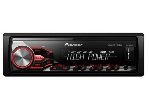 Автомобильная магнитола 1din Pioneer MVH-280FD – очень функциональное устройство. У автомагнитолы есть широкий набор мультимедийных технологий, которые позволяют выжать из устройства по максимуму. Ресивер способен выдавать звук на 4 колонки по 100 ватт. Есть возможность сохранения до 18 радиостанций на цифровом радио-тюнере. Кроме того, реализована возможность прослушивания аудиозаписей через карту памяти.