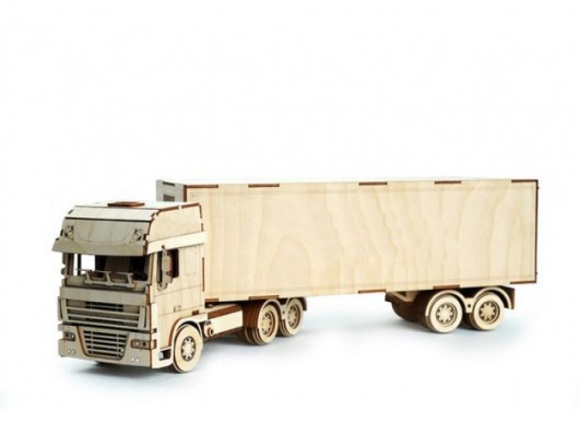 Вы очень интересно проведете время, собирая 3D конструктор, а после — получите полноценную качественную игрушку. Грузовик из дерева получается солидный и большой. К тому же сделан он очень реалистично и отлично ездит по любой поверхности. Кроме того, прицеп обладает такими креплениями, с помощью которых он поворачивается на поворотах, а дверцы кабины и прицепа легко открываются.