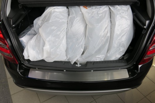 Накладка надежно защищает покрытие багажника вашего автомобиля, когда вы делаете погрузочно-разгрузочные работы. Аксессуар очень важен в тех случаях, когда груз довольно внушительный по размерам и весит при этом достаточно много. Такой багаж может легко оставить вмятины на покрытии или даже повредить бампер! А благодаря накладке багажника вы уверены, что такого точно не случится с вашим авто.