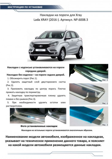 Данные накладки на внутренние пороги «Риваль» разработаны специально для автомобилей Lada X-RAY от 2016 г.в. и полностью повторяют их геометрию. Кроме того, накладки порогов двери Rival очень легко и быстро устанавливаются. И при этом надежно крепятся за счет плотного прилегания морозостойкого скотча.