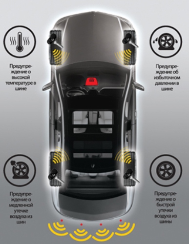 Комплектуется 4 датчиками TPMS и 4 парковочными датчиками