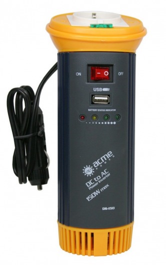 Автомобильный ивертор AcmePower AP-DS150 позволяет вам прямо в машине получить классическую розетку в 220В. Мощность данной модели инвертора дает вам возможность пользоваться в дороге самыми необходимыми бытовыми электроприборами или подзаряжать ноутбук. А ведь фен, бритва, чайник или кипятильник, ноутбук, электроплитка, аудио- или видеотехника и многие другие приборы существенно повышают комфорт поездки.