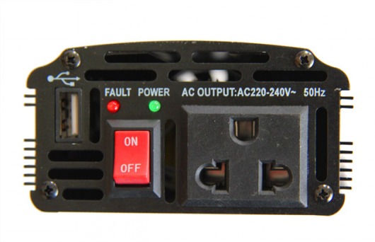 Преобразует напряжение 12В от автомобильного аккумулятора в переменное напряжение 220В