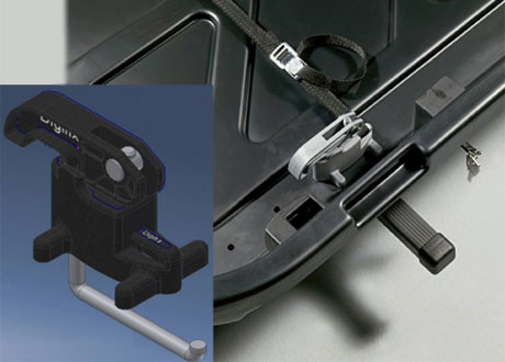 Модель оборудована центральным 3-х точечным замком, который не даст вам достать ключ из бокса, если он будет закрыт неплотно, поэтому отсутствует риск его произвольного открывания во время пути. В местах крепления имеются дополнительные резиновые уплотнители, которые  препятствуют попаданию влаги и грязи.