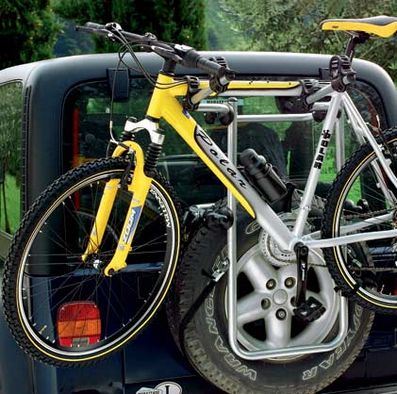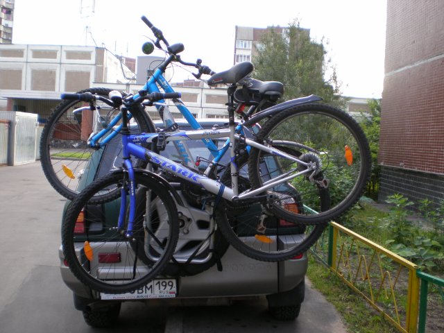 Крепление просто установить без использования каких-либо инструментов. Велосипеды крепятся за раму и фиксируются в держателях резиновыми ремнями. В комплекте идут фиксирующие резиновые ремни, посредством которых крепятся велосипеды. Багажник для велосипедов на запасное колесо удобно демонтируется, компактно складывается и удобен в хранении. Максимальная допустимая нагрузка — 30 кг., вес одного велосипеда — не более 15 кг.