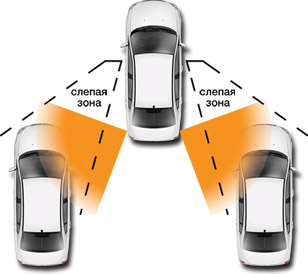 Зона обнаружения датчиками "слепых зон"