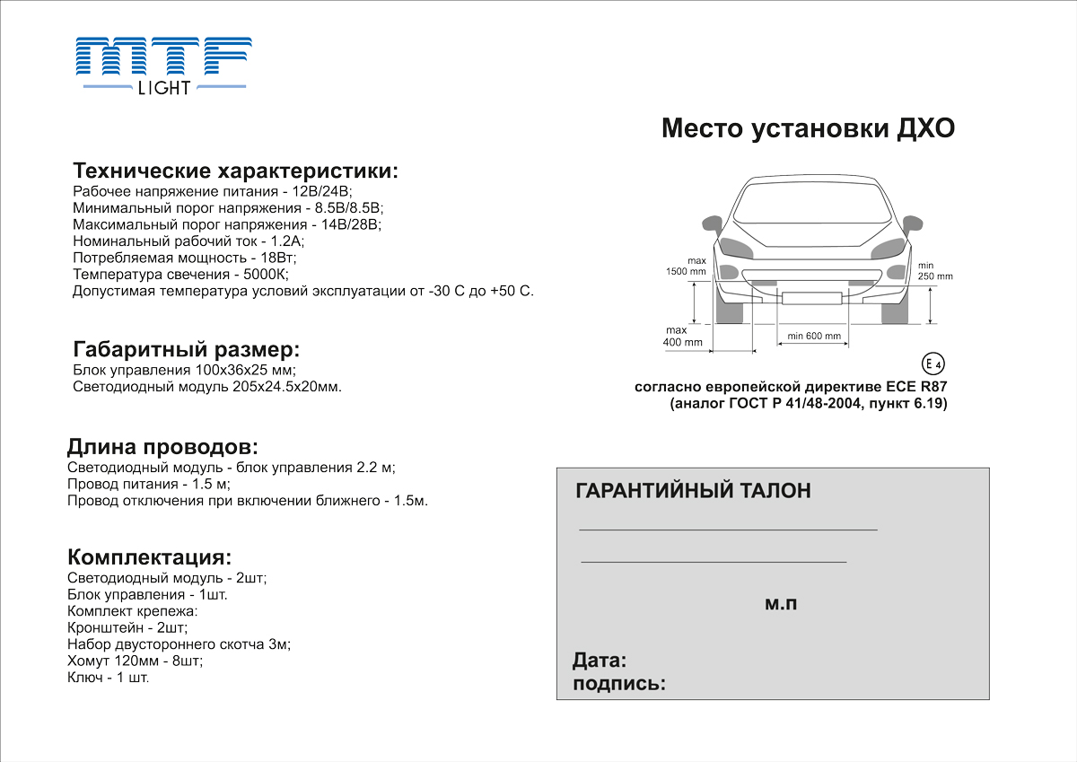 Благодаря специальному датчику, огни загораются, как только Вы поворачиваете ключ зажигания. А когда Вы включаете ближний свет или габаритную подсветку, светодиоды LDL18R5K автоматически перестают работать. Уникальный встроенный микрочип контролирует работу огней в зависимости от того, включен двигатель или нет.