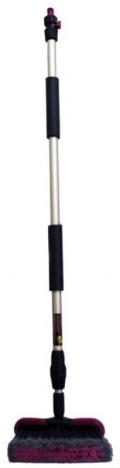 Усиленная телескопическая полая рукоятка для подачи воды. Удлиненные теплые накладки. Большая изогнутая голова из легкого пластика и распушенной щетины. Профессиональная.