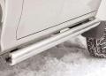 Боковые пороги на Mitsubishi L200 из нержавеющей стали диаметром 60 мм не боятся коррозии, сколов и царапин и выдерживают большие нагрузки. Боковые подножки-пороги с листом сделаны специально для автомобилей Mitsubishi L200 от 2006 г.в., легко устанавливаются и стильно смотрятся. В комплекте вы получите 2 подножки.