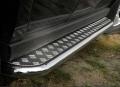 Боковые пороги на Jeep Grand Cherokee с алюминиевым профилем не боятся коррозии, сколов и царапин и выдерживают большие нагрузки. Боковые подножки-пороги с листом из алюминия сделаны специально для автомобилей Jeep Grand Cherokee от 2013 г.в., легко устанавливаются и стильно смотрятся.