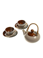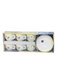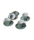 Размер: диаметр чашки - 85 мм, высота - 70 мм, диаметр блюдец - 140 мм.
