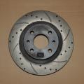 Для отвода газов, появляющихся в паре трения фрикционная накладка-тормозной диск, при энергичном торможении, на рабочей поверхности тормозного диска, выполнены комбинации сквозных отверстий во внутреннюю, вентиляционную полость диска, данное техническое решение позволяет уверенно контролировать момент начала и окончания торможения на всех режимах.
