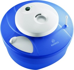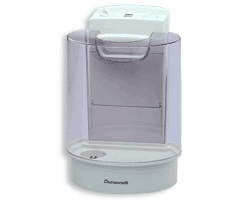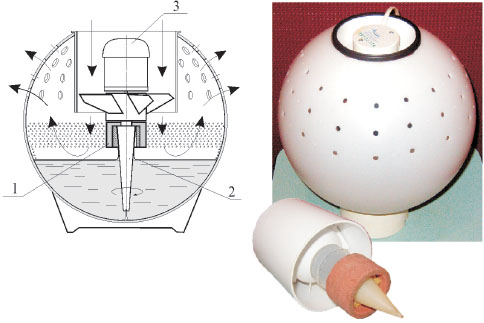 Увлажнители холодного действия. Принцип действия такого прибора довольно прост. Влага испаряется с поверхности влажного фильтра или катриджа, который опущен в воду наполовину. Для того, чтобы испарение было быстрее, в увлажнитель нагнетается сухой воздух из помещения. Каждые две недели нужно обязательно очищать фильтр и емкость для воды.